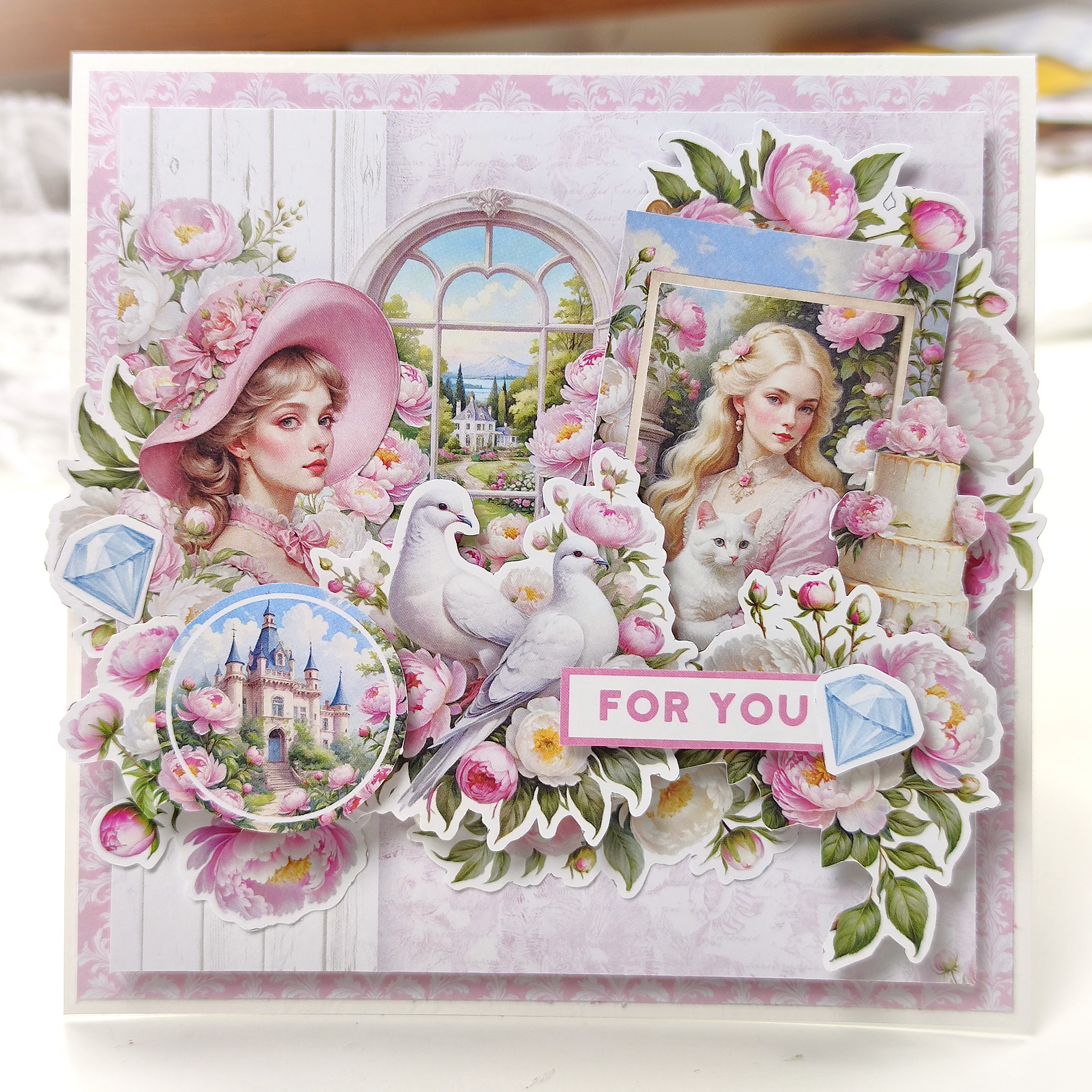 1 Arkusz papieru z dwustronnymi elementami do wycinania 30x30 cm SWEET PEONIES