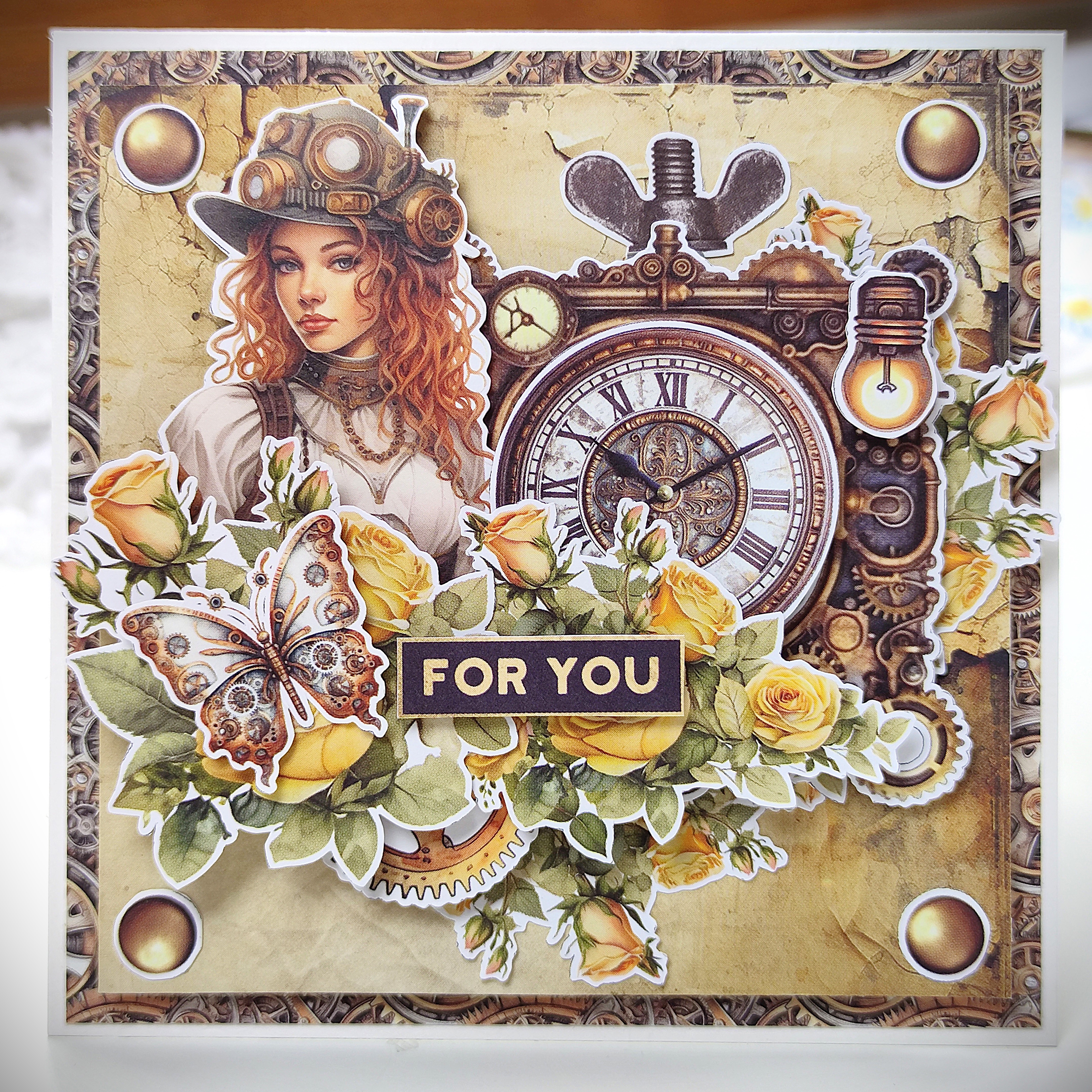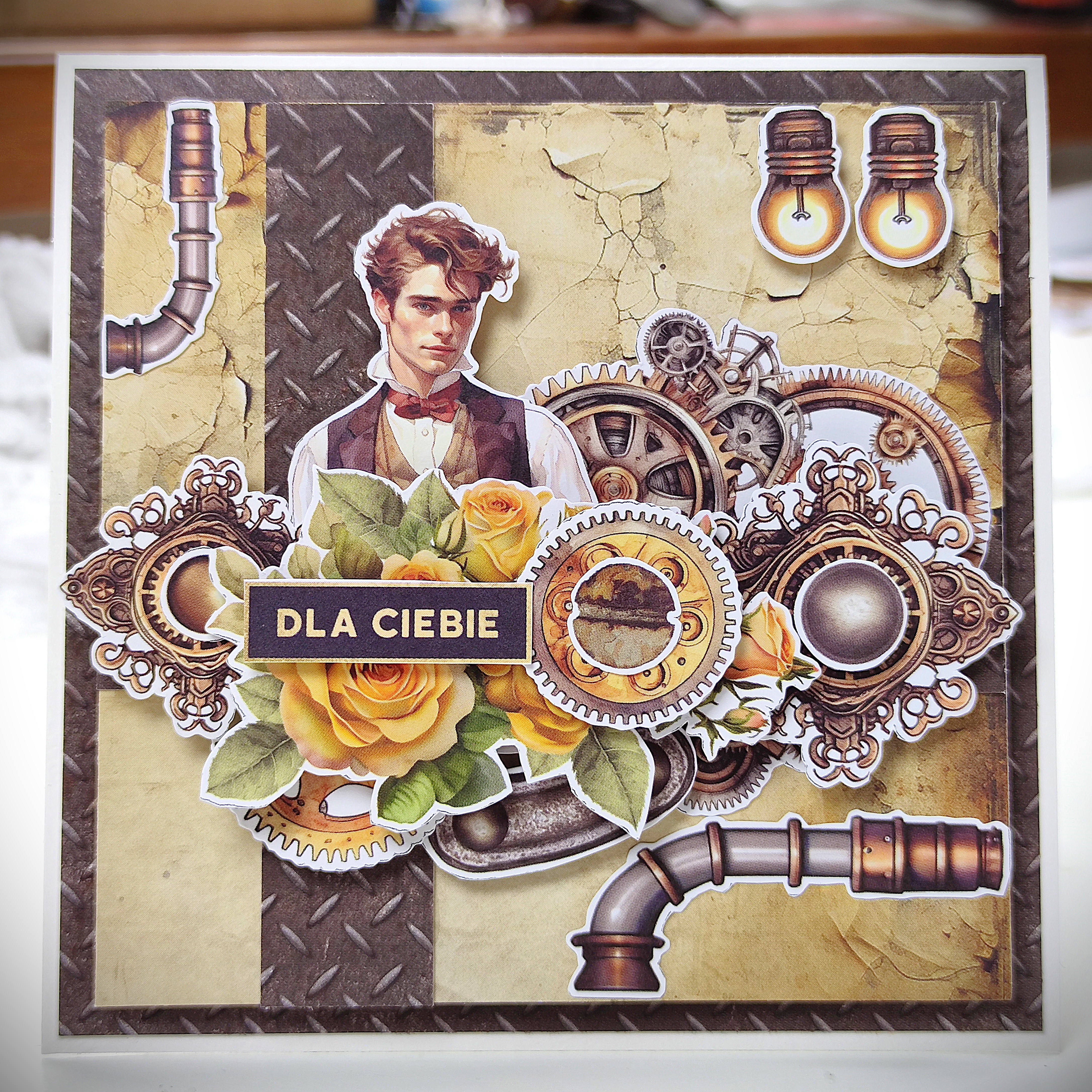 1/2 bloczka papierów 15x15 cm z kolekcji STEAMPUNK JOURNEY (12 arkuszy)