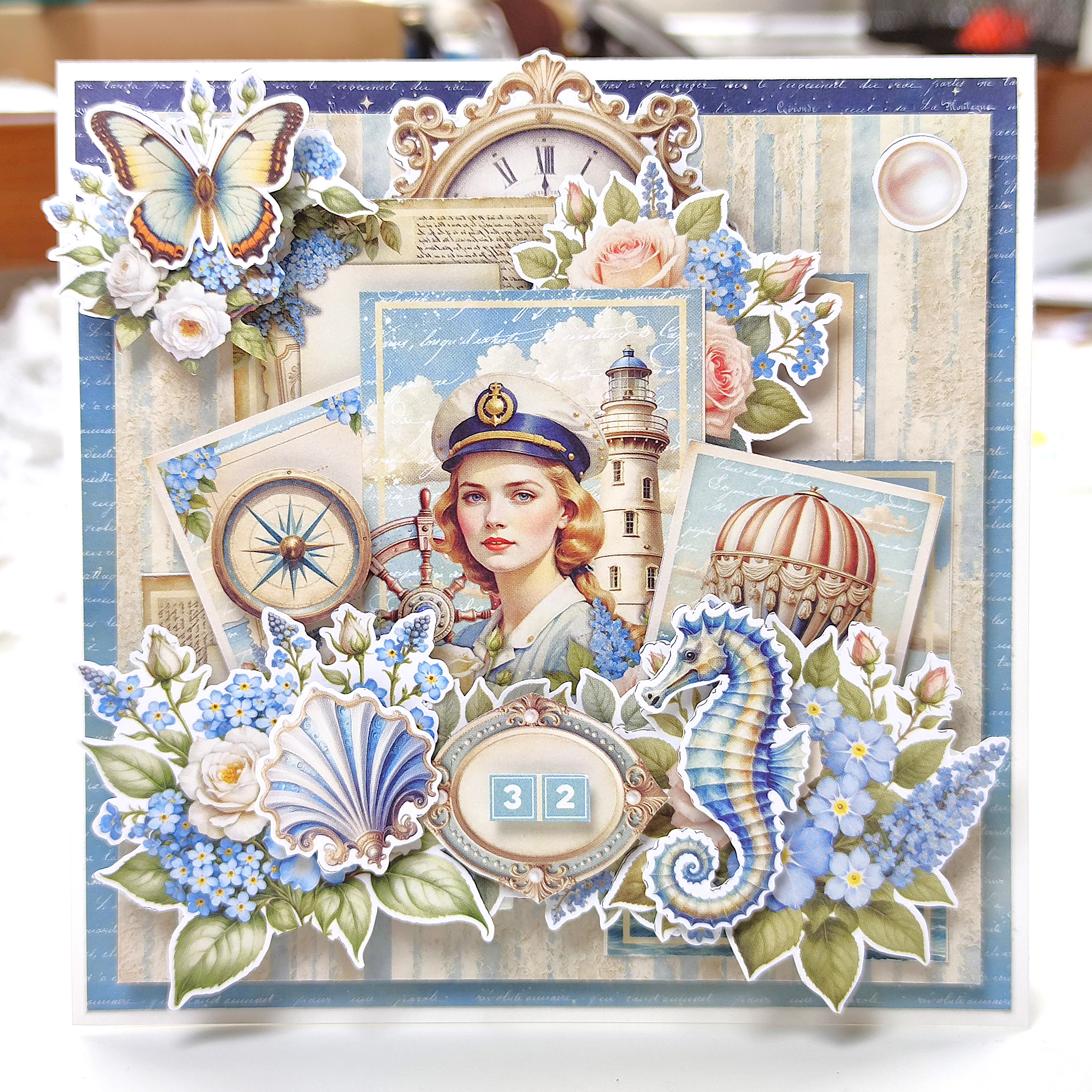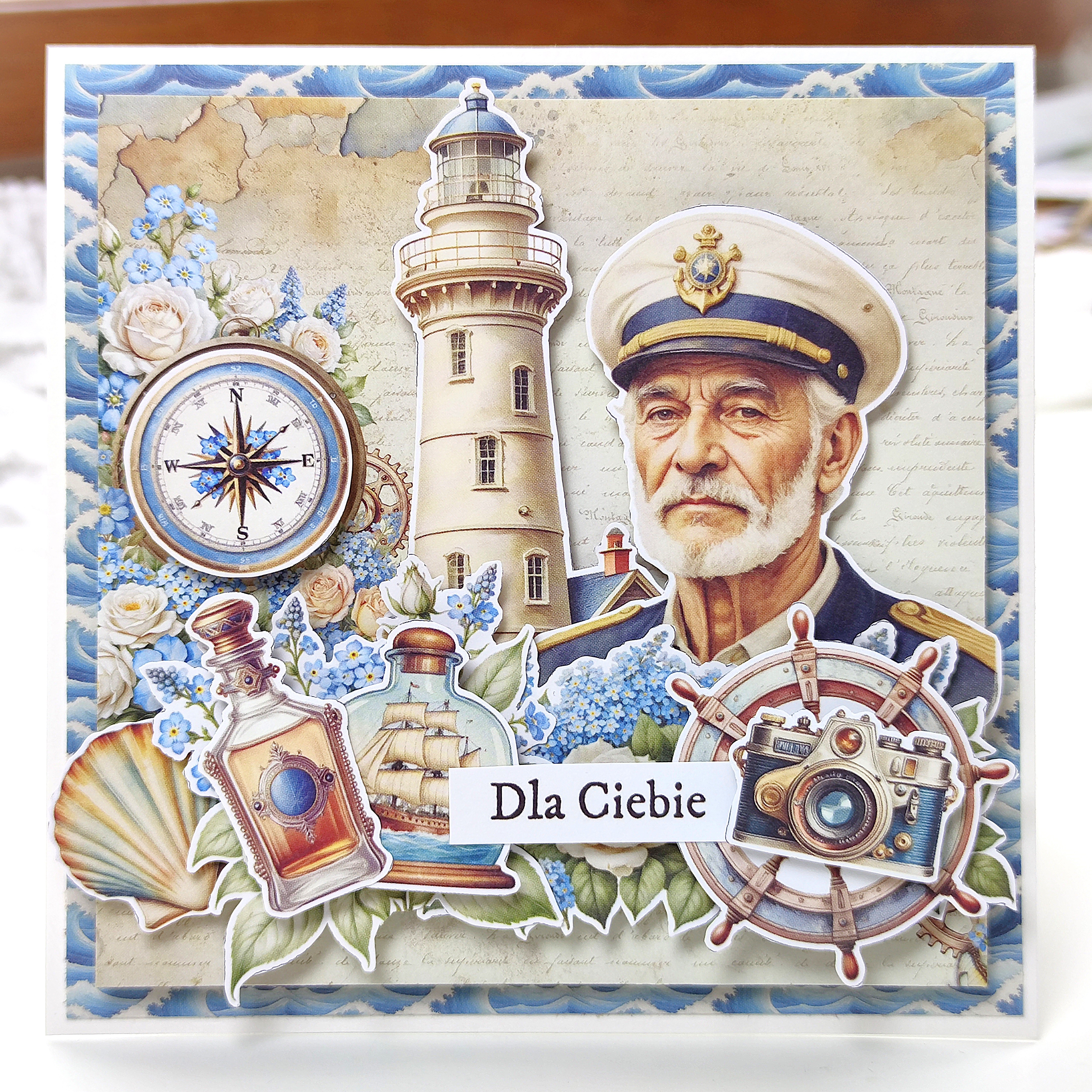 1/2 bloczka papierów 15x15 cm z kolekcji OLD MARINA (12 arkuszy)